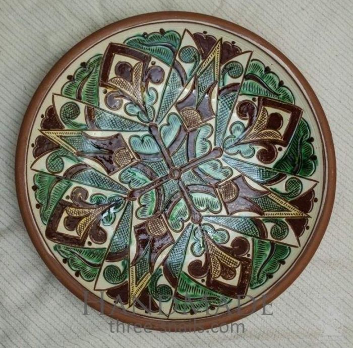 Изготовление тарелки возможно только на заказ. Срок выполнения – 30 дней. Размер изделия в диаметре составляет 33 см.